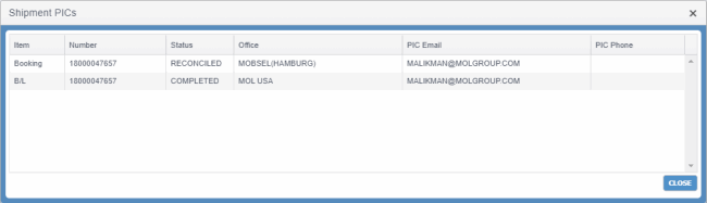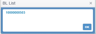 B/L number corresponding to the Booking. You can click the B/L number hyperlink to navigate to the View Bill of Lading (OPBLW02) screen, which opens the B/L details in read-only mode. |