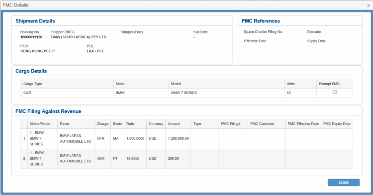Button to view the FMC Filing details using the FMC DetailsFMC Details pop-up.