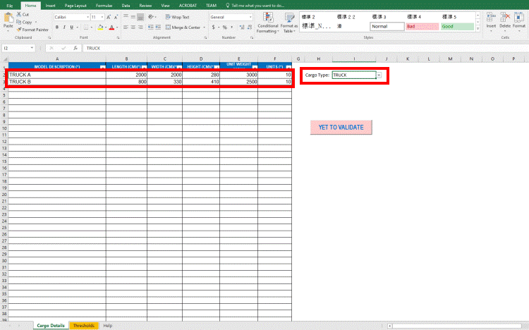 - If you change the cargo type, the values need to be validated again. In such case, the button name changes again to YET TO VALIDATE.