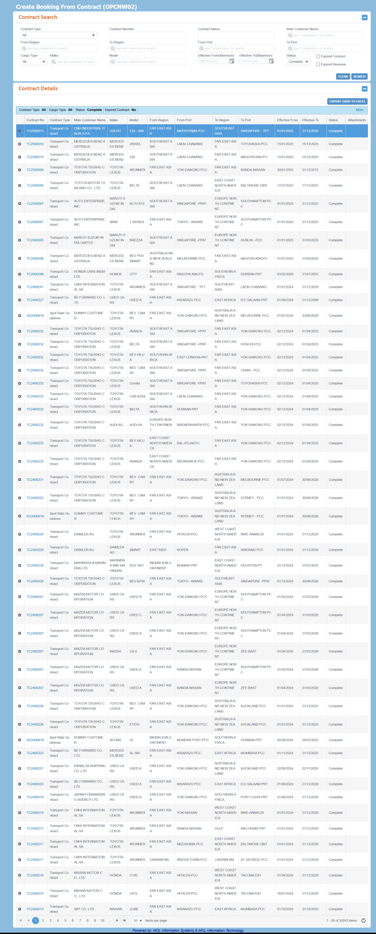 All PCC Bookings are controlled through a Contract, be it a Transport Contract, Agreement with Brokers, Agreement with Broker Customers, Spot Rate Guideline or Quotation. Booking with MOL will be impossible without any one of these types of Contract.