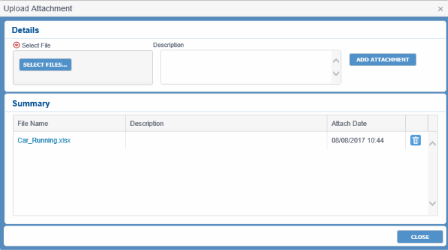 Use the Upload Attachment dialog box to view the already uploaded files against a Contract in this dialog box. You can also upload/download a file against a particular Contract. You can attach multiple documents. The default file types that are accepted are: .xls, .xlsx, .doc, .docx, .txt, .ppt, .pptx, .jpg, .gif, .jpeg, .bmp, .png, .pdf, .msg) related to the Contract.