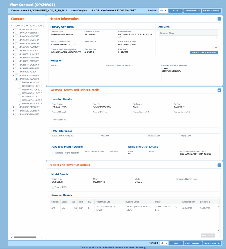 PCC Cargo Contract is a long term agreement between MOL Sales and any Customer after a commitment is made by the Customer to ship the Cargo within a specified period of time. A PCC Booking can only be created on the basis of an active Contract acceptance by the Customer.
