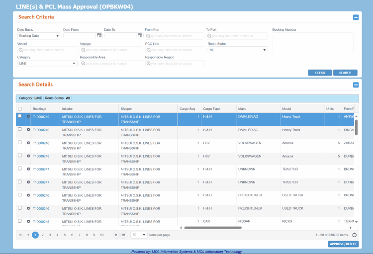 LINE(s) & PCL Mass Approval> Field Descriptions |
